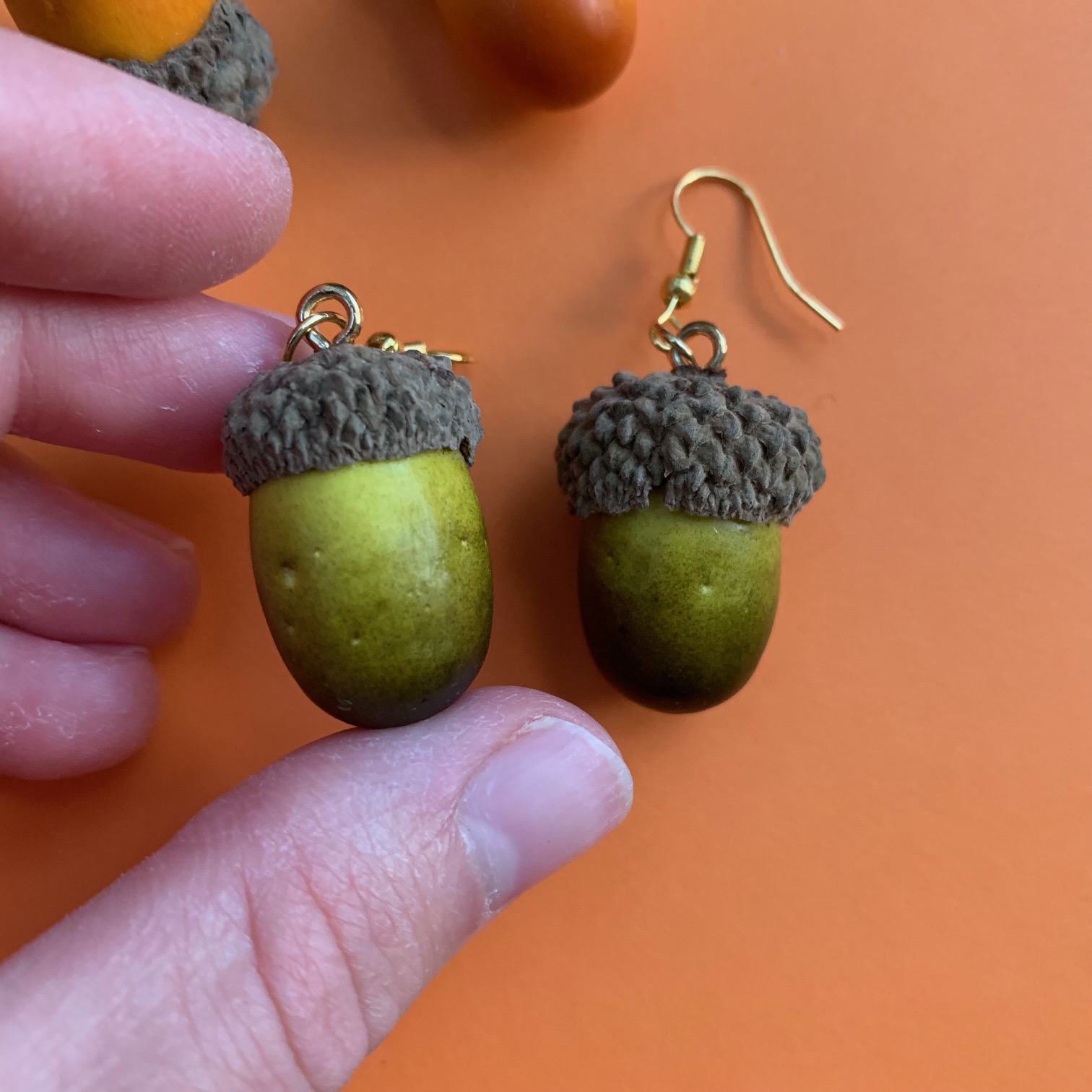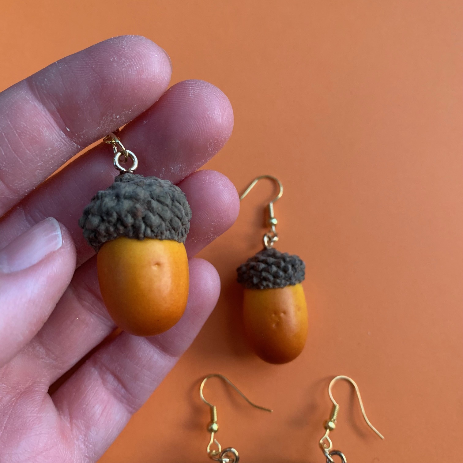 Each acorn charm measures ~1″ L x 0.75″ W, not including the earring wire hooks or clip ons!