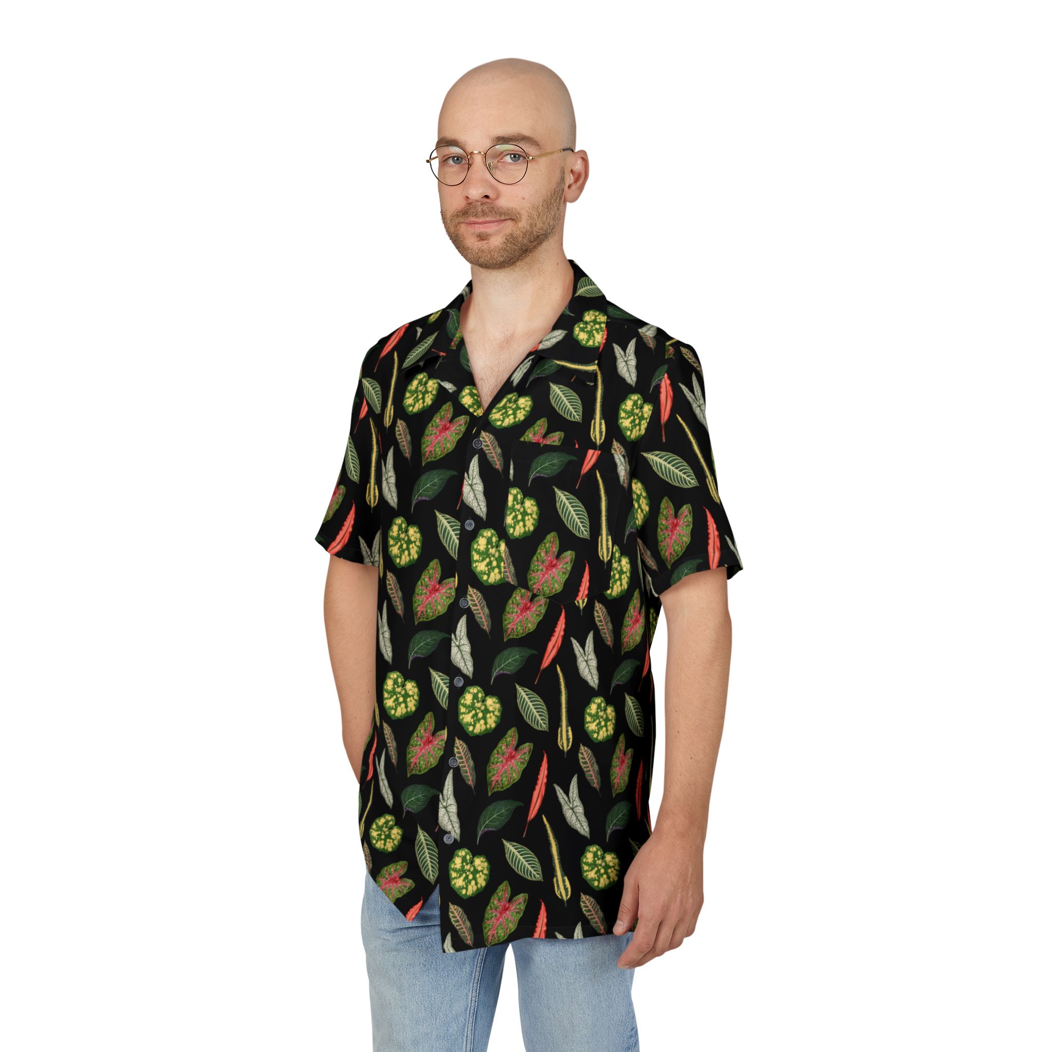 This All-Over Print Hawaiian Button-Down Shirt combines tropical style with laid-back comfort. With a flowy, breathable design perfect for warm days, it features vibrant, all-over prints and your choice of black or white buttons for a custom touch. The structured collar and placket add a polished finish to this casual classic, making it ideal for everything from beach outings to relaxed gatherings.