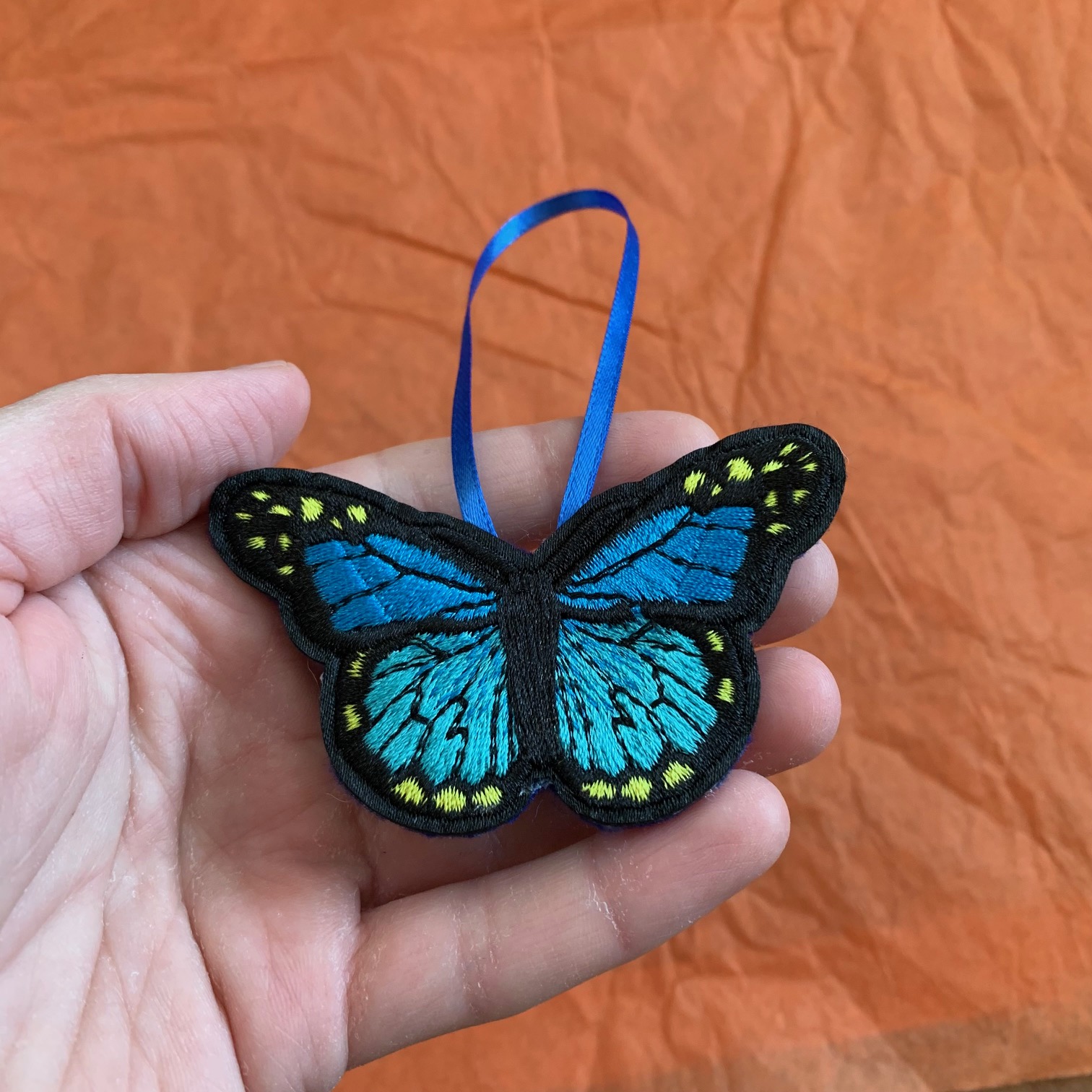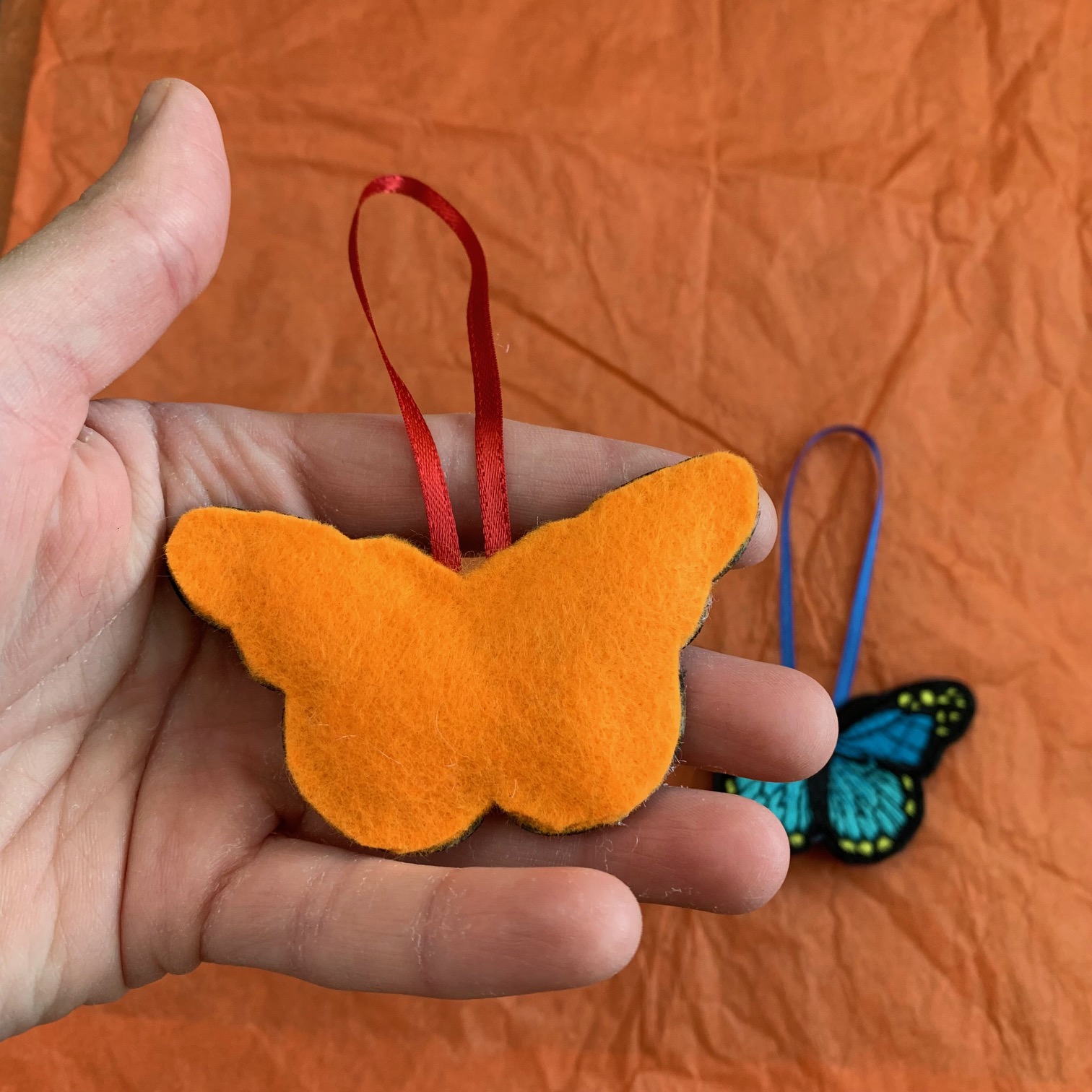 Each ornament measures ~3″ L x ~1.75″ W not including the hanging ribbons!
