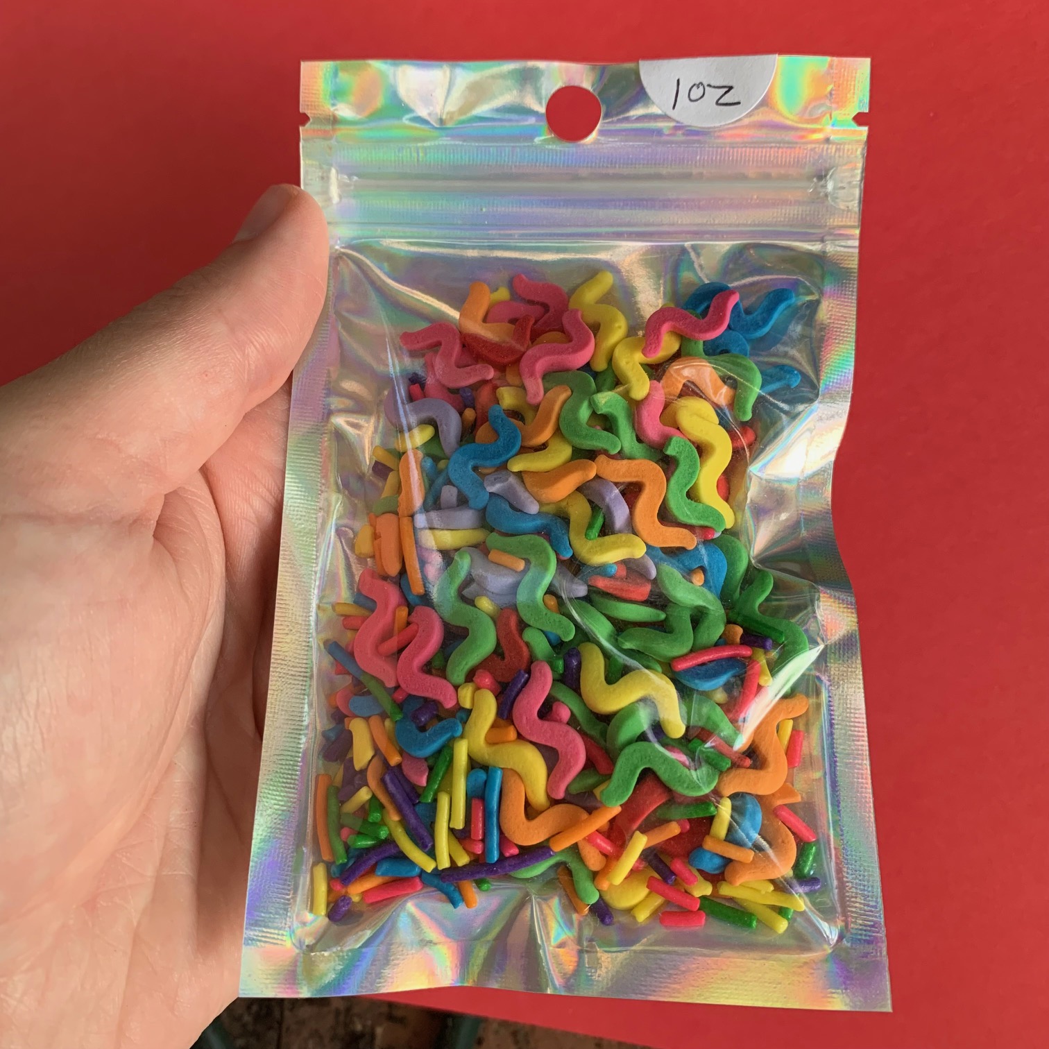 Capture the silliness of worms on a string with these adorable, colorful, silly sprinkles!